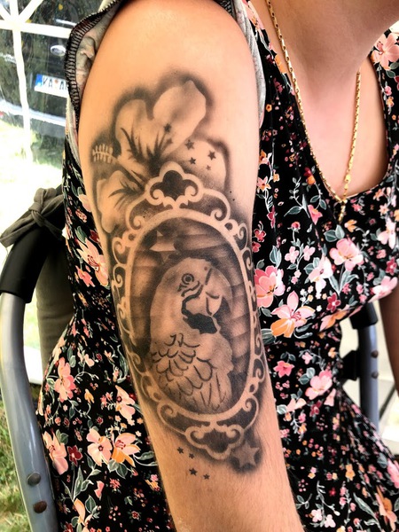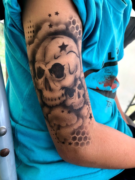 Oder Wir machen coole BodyArtTattoos - dies sind Airbrush-Tattoos aus mehreren Bestandteilen und können sich über den ganze Arm, Schulter, Rücken oder Beine ziehen ;-) Ein echter Hingucker !