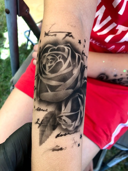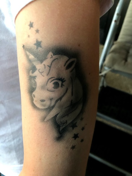 Airbrush Tattoos erfreuen sich derzeit großer Beliebtheit. Wir haben einzelne kleine Bildchen die wir dann mit spezieller hautfreundlicher Farbe mit der Airbrush-Pistole auf die Haut bringen.