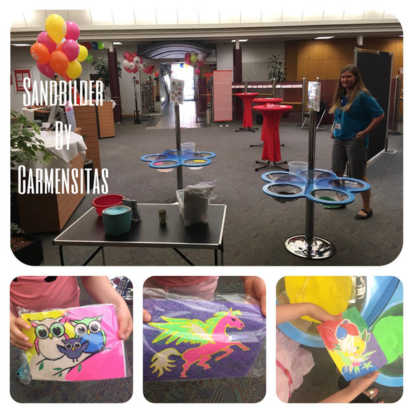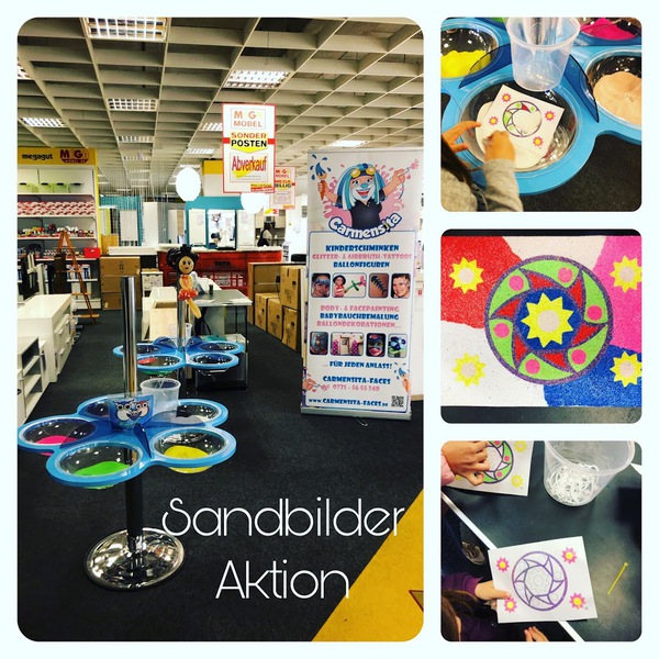 Sandbilder werden mit feinem, bunten Sand und speziellen Klebefolien Motiven gestaltet. Ein tolle Aktion für Geburstage und ebenso für Ihr Firmenfest oder Einkaufscenter.